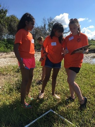 Students from Bogue Sound Elementary and the Brad Sneeden Science Academy learned about salt marsh habitats and living shorelines when exploring the shore of Bogue Sound in Ocean, North Carolina. Federation educators created salt marsh data sheets for the Science Academy students to complete using scientific quadrats.