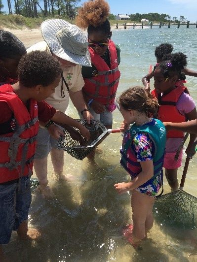 Throughout the spring and summer, North Carolina Coastal Federation educators in our central region led eight Coastal Discovery Field Trips, which reached a total of 128 students and 29 chaperones. Community partners and student groups included: Boys and Girls Clubs of Beaufort, Bogue Sound Elementary School, Brad Sneeden Science Academy, Morehead City Childcare Network, The Bridge Downeast, EnviroKids, Mt. Tabor Missionary Baptist and AME Zion Church of New Bern. The groups traveled to various sites including Hammocks Beach State Park, Cape Lookout National Seashore, Hoop Pole Creek Nature Preserve and Harkers Island.